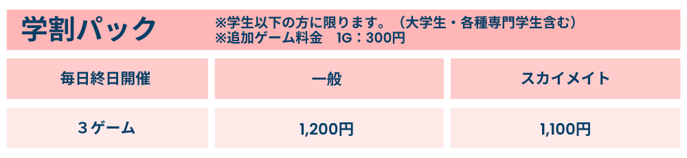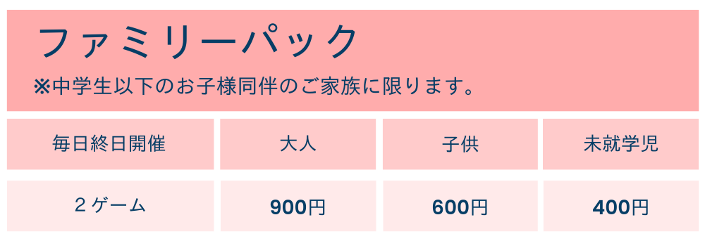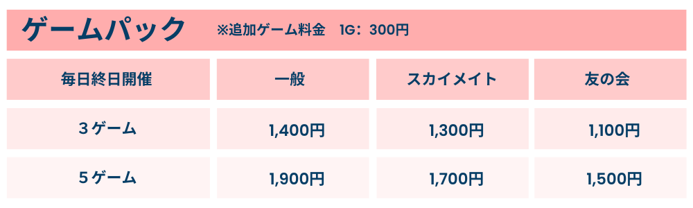 ◎レーン状況によりレーン数、ゲーム数などを制限させていただく場合がございます。